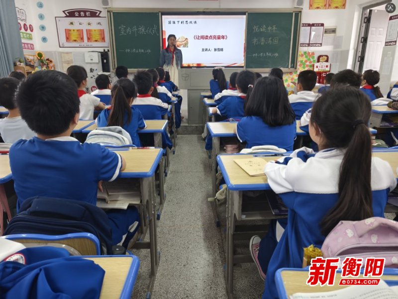 因下雨原因,原定在操場(chǎng)的升旗儀式改為室內(nèi)進(jìn)行。上午8時(shí)30分,教導(dǎo)主任通過(guò)校園廣播,為全校師生作題為《讓閱讀點(diǎn)亮童年》的國(guó)旗下講話,正式拉開(kāi)為期一周的閱讀活動(dòng)序幕。講話中,教導(dǎo)主任張雪晴為同學(xué)們講述了數(shù)學(xué)家華羅庚少年時(shí)期堅(jiān)持讀書(shū)的故事,鼓勵(lì)大家珍惜當(dāng)下的閱讀條件,養(yǎng)成每日讀書(shū)的好習(xí)慣。緊接著,各班召開(kāi)閱讀主題班會(huì),班主任帶領(lǐng)學(xué)生制定了各自的閱讀周計(jì)劃。