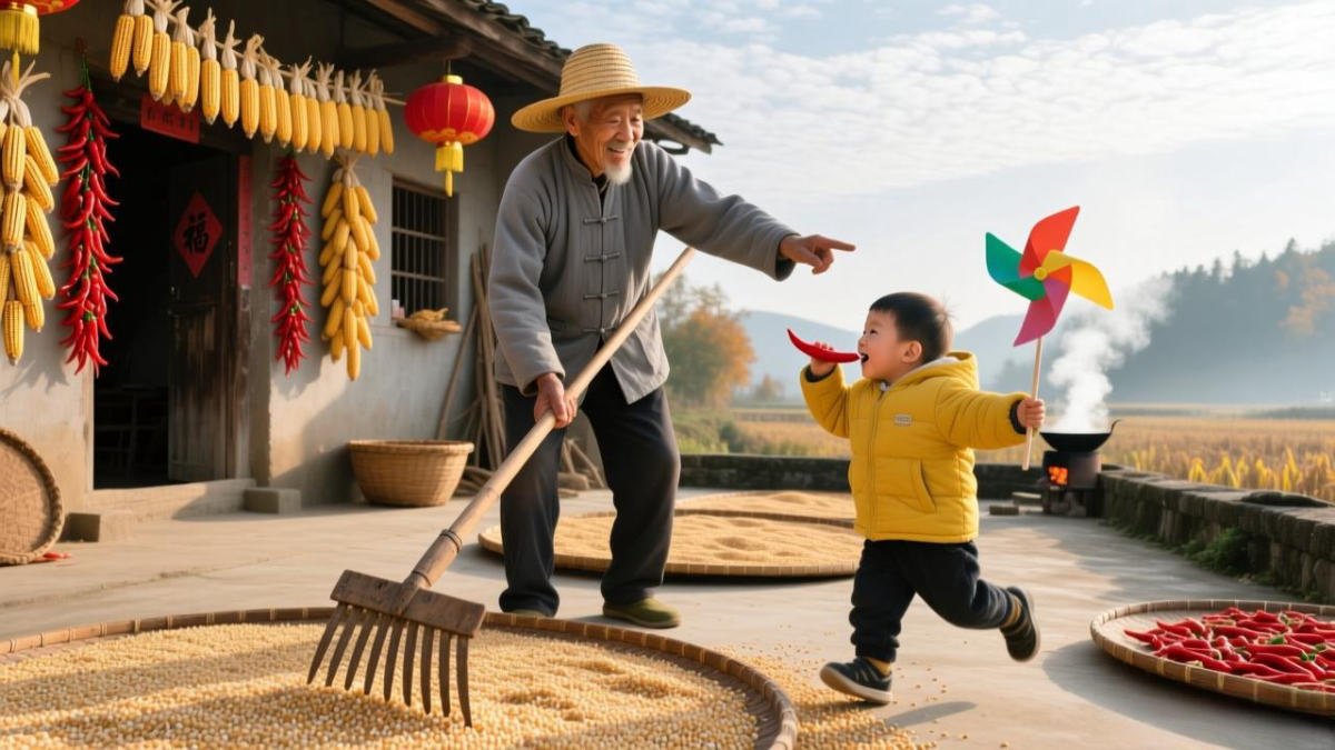 導(dǎo)子鎮(zhèn)的農(nóng)家院里,王阿婆的身影在檐下映著晨光。陶甕旁擺著剛切好的蘿卜條,勻勻的條兒裹著粗鹽,她伸手拌勻時(shí),鹽粒落在瓷盆里沙沙響。陶甕側(cè)面刻著淺淺的痕,是阿婆用指甲劃的“霜降”二字,“每年腌菜都刻一筆,這甕用了十五年,裝的都是霜降的味道。”她笑著說(shuō),語(yǔ)氣里滿是珍視。屋檐下的竹匾里,南瓜子正曬得焦黃,炒貨的香氣漫過(guò)竹籬笆,惹得院里的孩子圍著爐臺(tái)蹦跳,鼻尖沾著細(xì)碎的炒貨末,連呼“阿婆,再炒一碗”。老樟樹下,幾位老人坐在石凳上曬太陽(yáng),手里攥著暖手的瓷杯,閑話里滿是“霜降添衣”的叮囑,樟葉上的霜粒偶爾落下,輕輕打在衣肩上,倒添了幾分歲月的愜意。