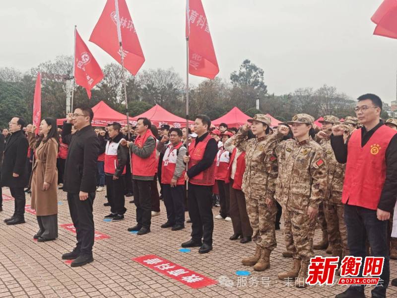 衡陽新聞網(wǎng)訊 通訊員曹姣雄報(bào)道 春風(fēng)送暖,薪火相傳。3月5日,在第63個(gè)學(xué)雷鋒紀(jì)念日到來之際,耒陽市發(fā)明家廣場彩旗飄揚(yáng)、暖意融融,“學(xué)雷鋒做志愿 奮進(jìn)十五五 共建新耒陽”志愿服務(wù)活動(dòng)啟動(dòng)儀式在此隆重舉行。此次活動(dòng)由耒陽市創(chuàng)文辦、市委宣傳部、市委社會(huì)工作部、市委政法委、市人民武裝部政工科聯(lián)合主辦,200余名來自全市各政府部門、志愿者組織及愛心企業(yè)的代表齊聚現(xiàn)場,以實(shí)際行動(dòng)傳承雷鋒精神,彰顯了耒陽市委、市政府對弘揚(yáng)雷鋒精神、推進(jìn)志愿服務(wù)事業(yè)常態(tài)化制度化的高度重視與系統(tǒng)部署。